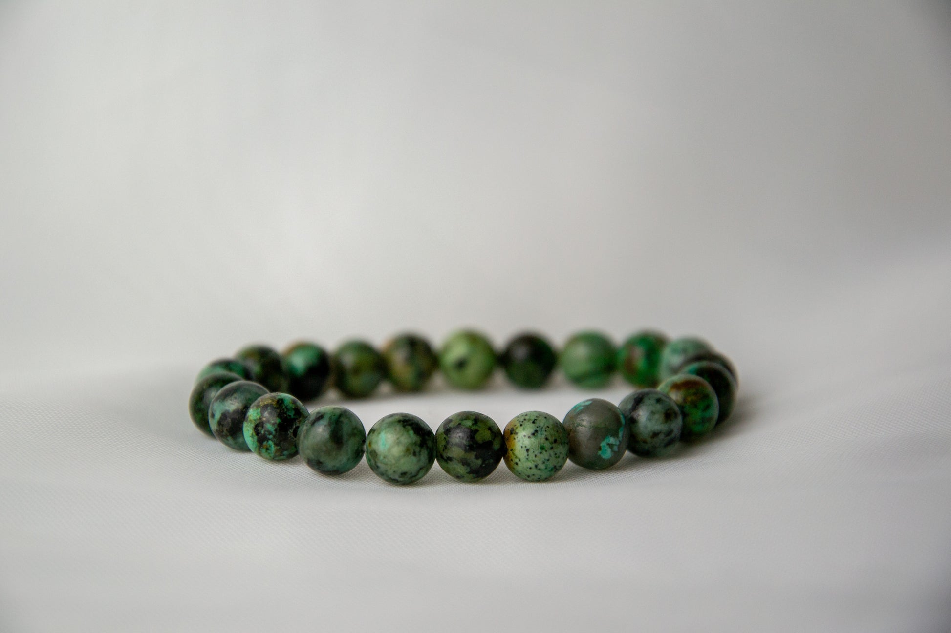 The earthy and calming hues in this bracelet serve as a constant reminder of African Turquoise's potential to offer protection, support positive change, and promote inner peace. It empowers the wearer to face life's challenges with strength and resilience, facilitating personal growth and transformation.