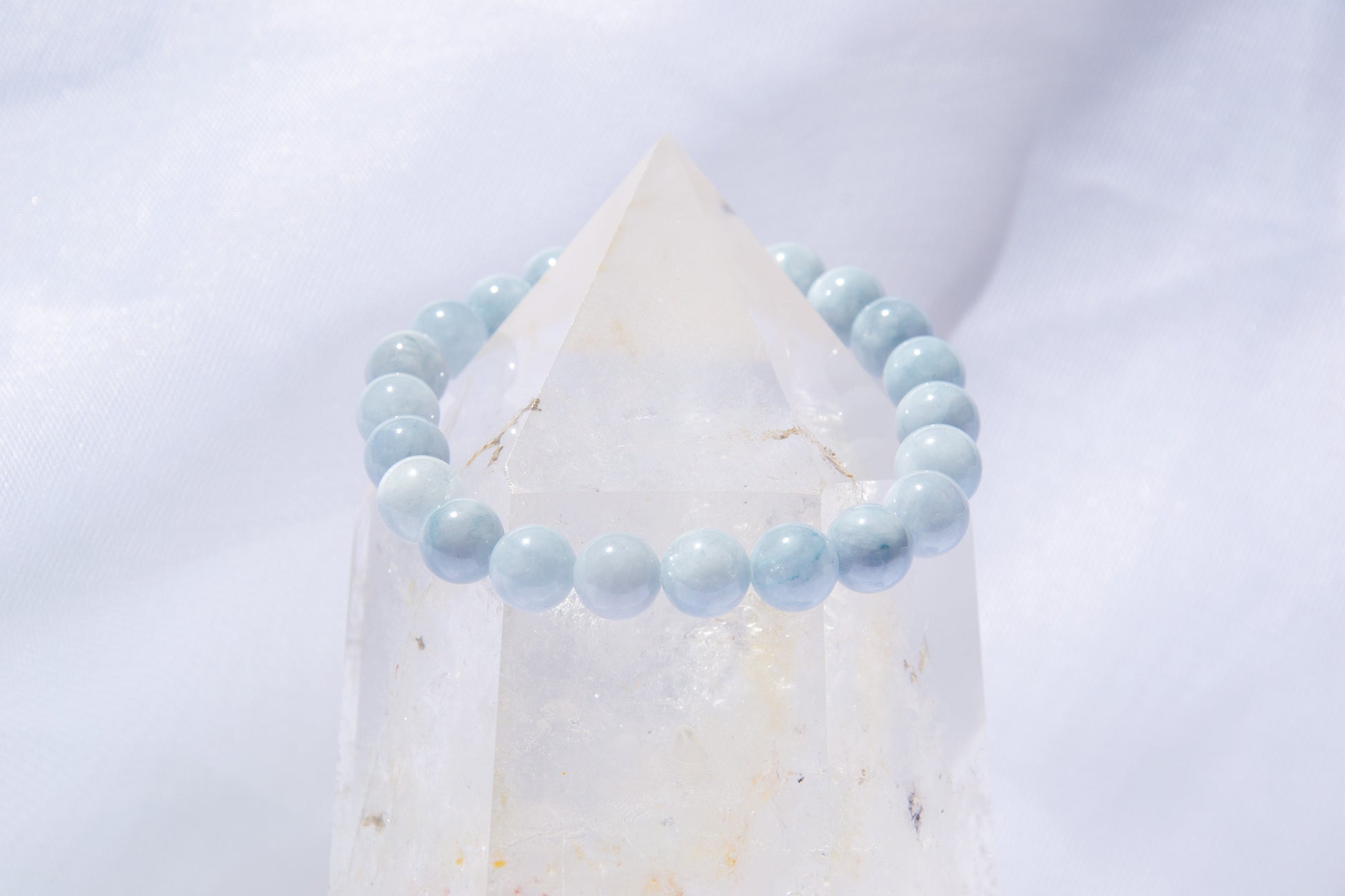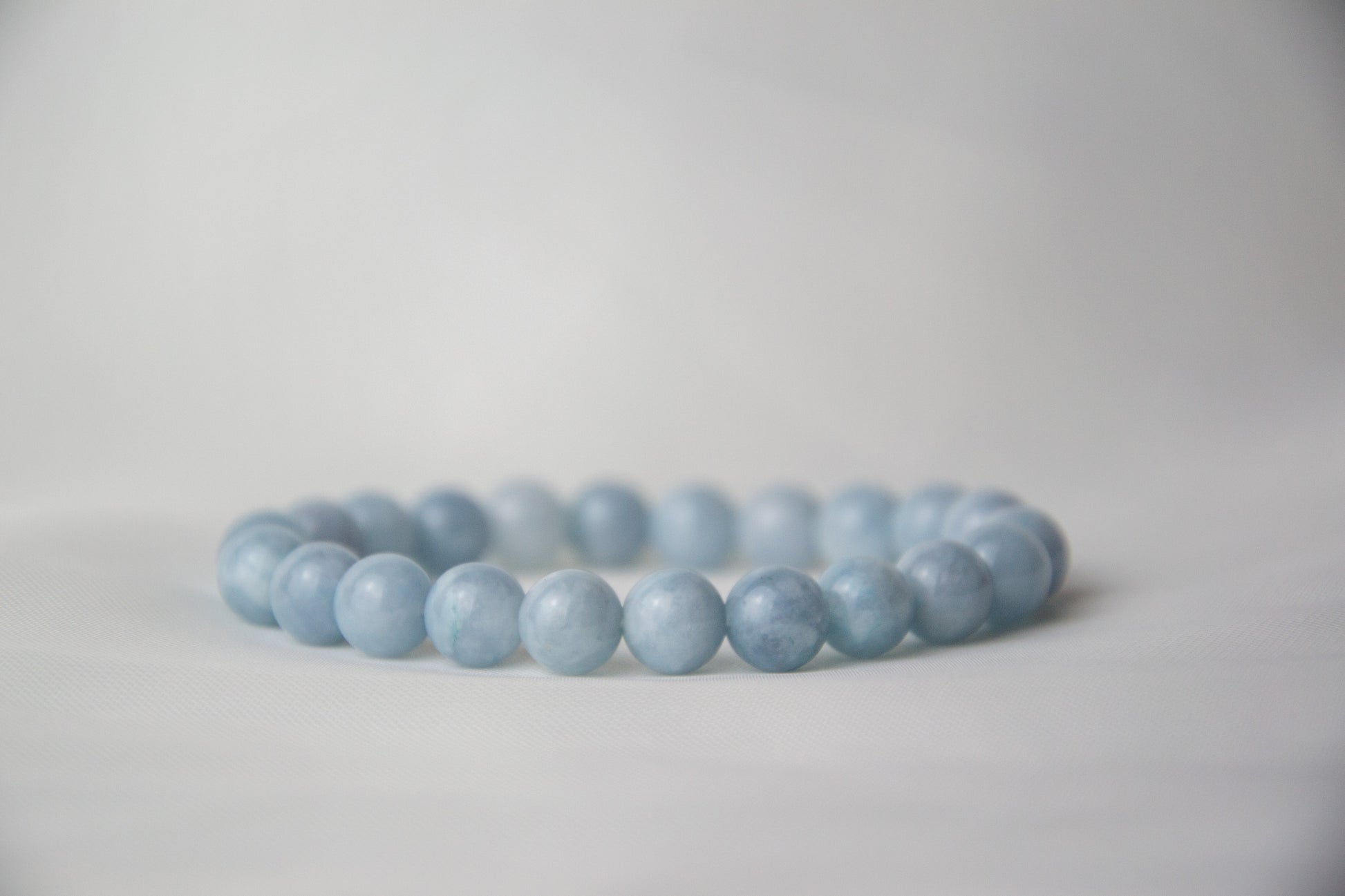 Introducing our exquisite Aquamarine bracelet, a gemstone renowned for its qualities of tranquility, anger release, and hope. Each carefully selected bead showcases the serene nature and unique properties of Aquamarine, making it a symbol of calm and positive transformation.