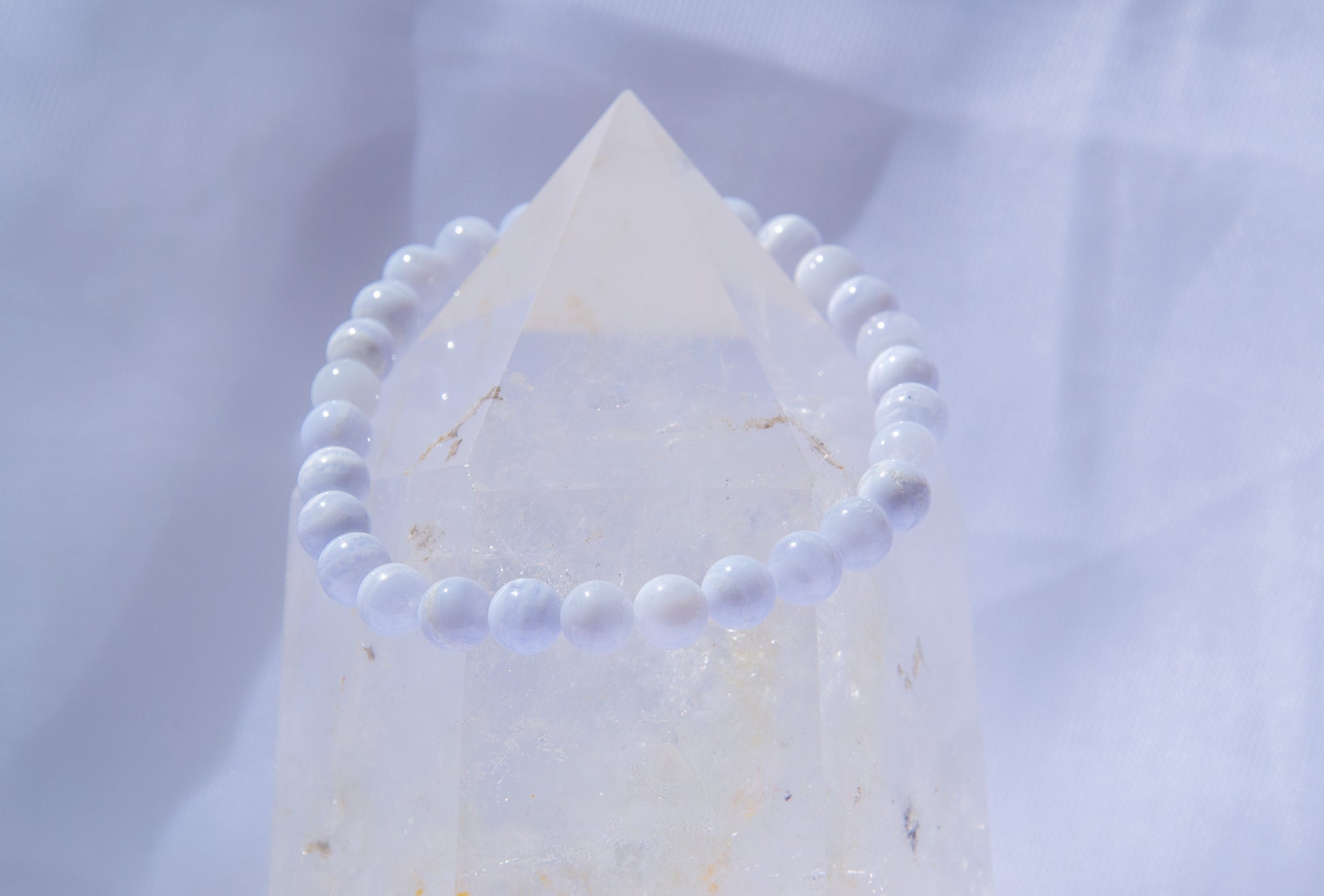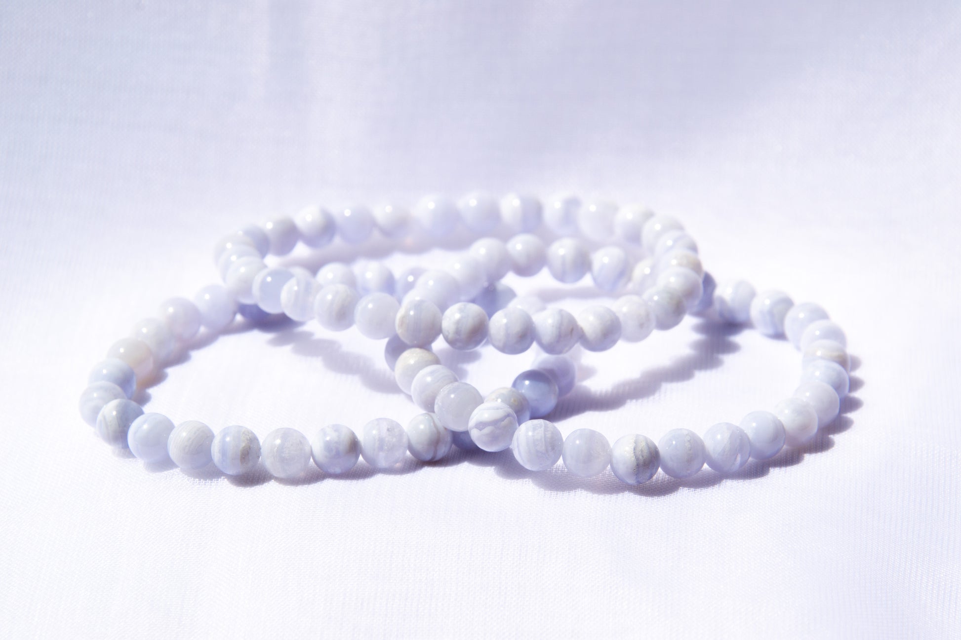 Introducing our exquisite Blue Lace Agate bracelet, a gemstone celebrated for its qualities of calmness, positive thought, and hope. Each meticulously chosen bead reflects the serene nature and unique properties of Blue Lace Agate, making it a symbol of tranquility and optimism.