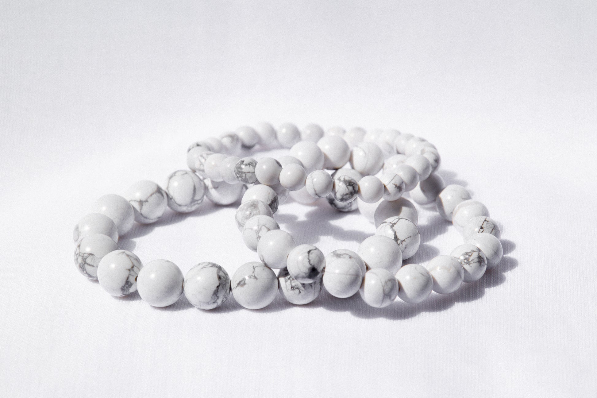 Introducing our exquisite Howlite bracelet, a gemstone celebrated for its calming properties that help quiet an overactive mind and enhance creativity. Each carefully selected bead reflects the soothing and inspiring qualities of Howlite, making it a symbol of mental tranquility and creative energy.