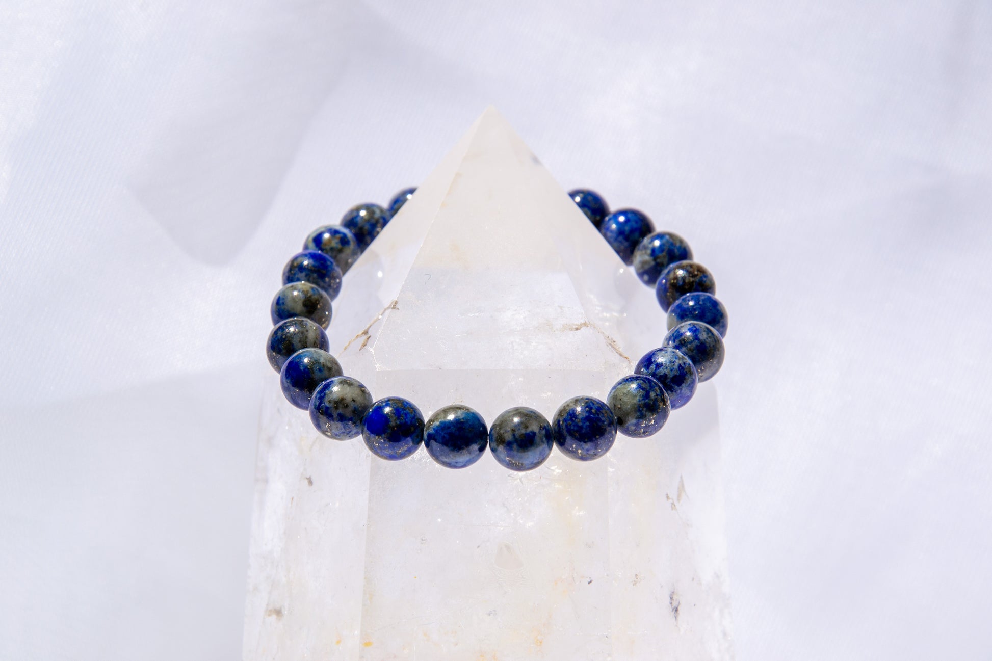 Introducing our exquisite Lapis Lazuli bracelet, a gemstone celebrated for its qualities of stress relief, inner power, and confidence. Each carefully chosen bead reflects the serene and empowering properties of Lapis Lazuli, making it a symbol of tranquility, strength, and self-assuredness.