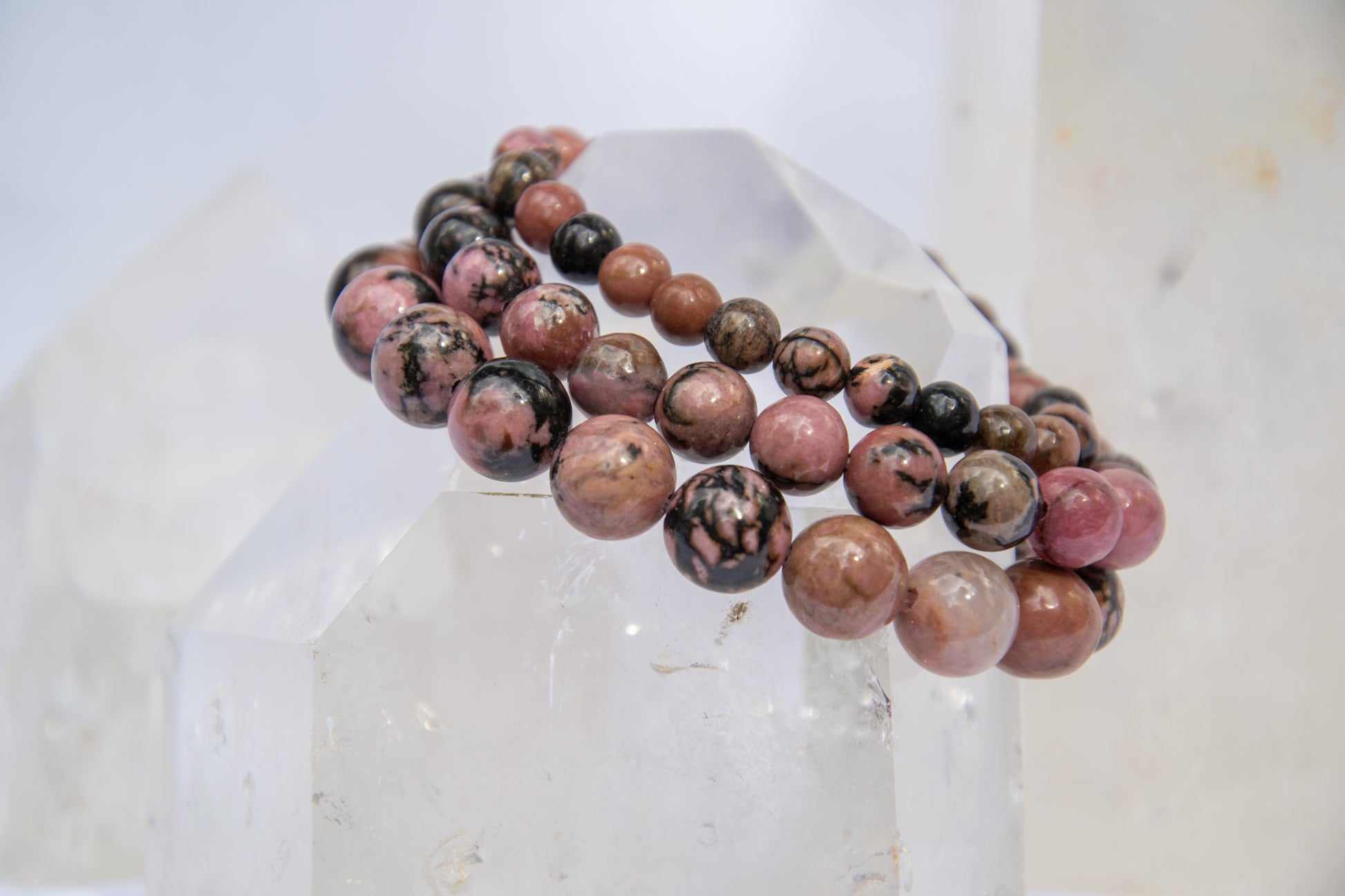 The striking blend of colors in this bracelet serves as a constant reminder of Rhodonite's potential to support forgiveness, grounding, and self-love. It empowers the wearer to navigate life with a sense of inner peace, emotional healing, and a deep appreciation for oneself.