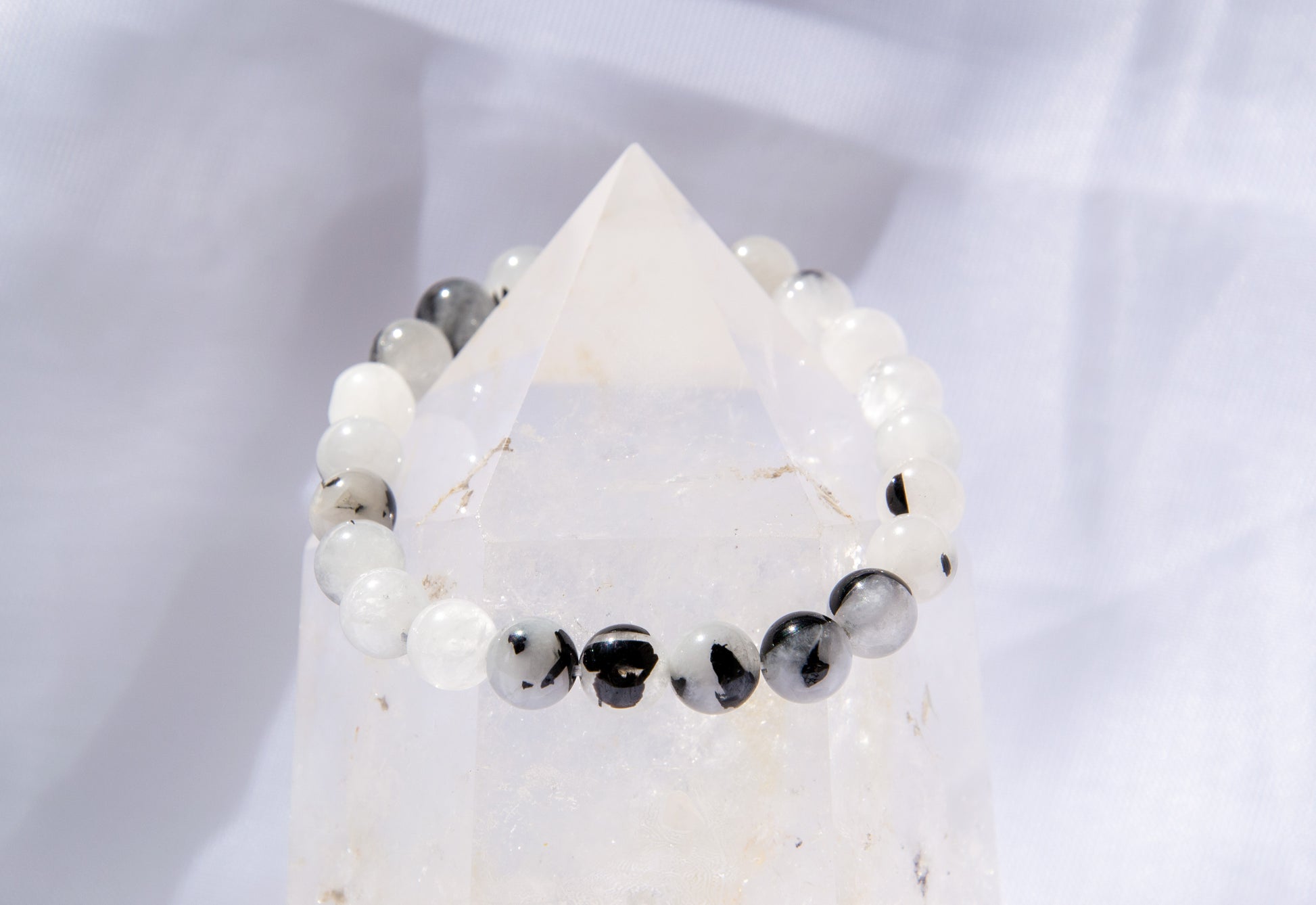 The unique combination of Black Tourmaline and Clear Quartz within this bracelet brings together the energies of balance, protection, and grounding. It serves as a constant reminder of the interconnectedness between our physical and spiritual well-being, creating a harmonious blend that resonates with the wearer's inner self.