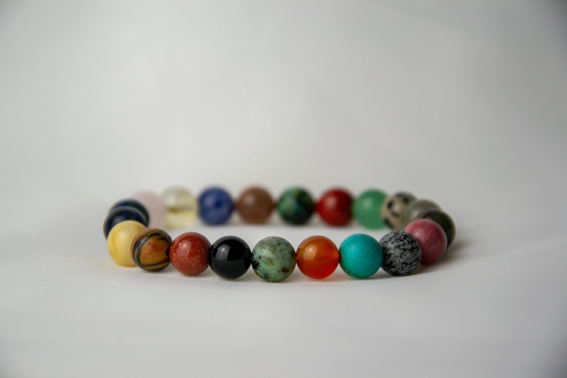 Spiritually, the World Traveler Bracelet connects you with higher realms of consciousness, enhancing your spiritual journey. The varying colors and properties of the gemstones serve as a reminder of the interconnectedness of all things, fostering spiritual growth and enlightenment.